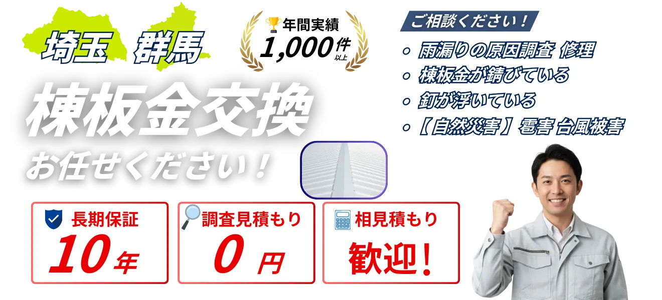 棟板金の浮き サビ・腐食 釘の抜け 強風対策